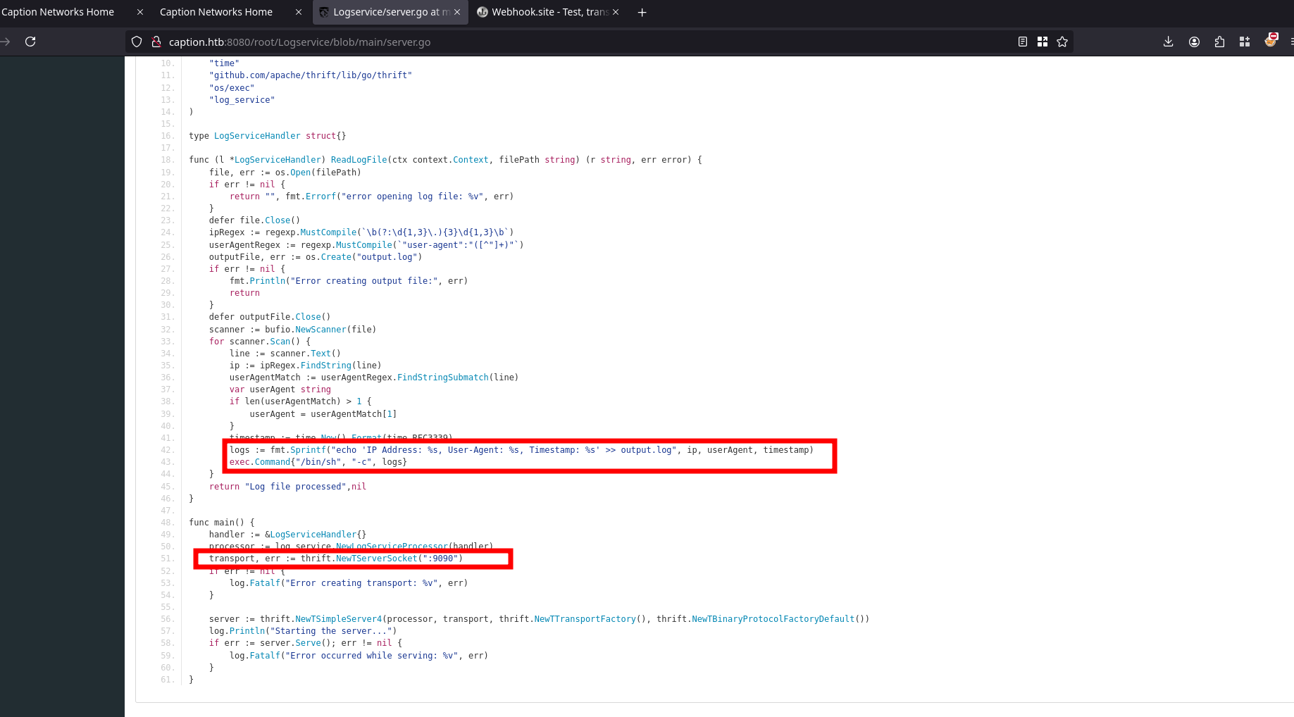 This implies that code execution becomes possible if the logs variable can be controlled. For instance, manipulating a parameter like the userAgent variable could provide the necessary input to exploit the vulnerability.