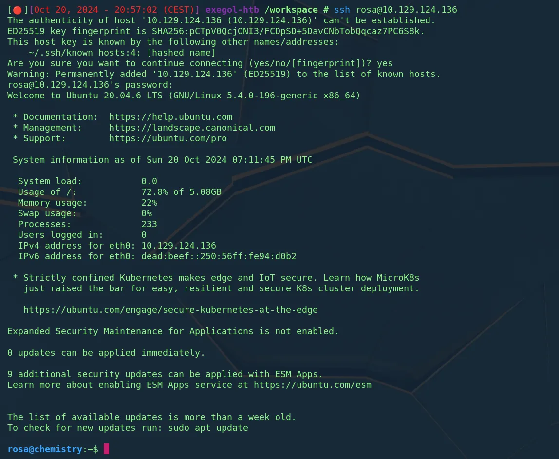 [🔴][Oct 20, 2024 - 22:08:44 (CEST)] exegol-htb chemistry # ssh root@10.129.124.136 -i id_rsa