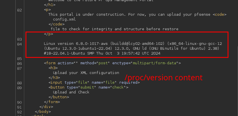 - The page reveals a file upload form to check the integrity of XML configuration files.