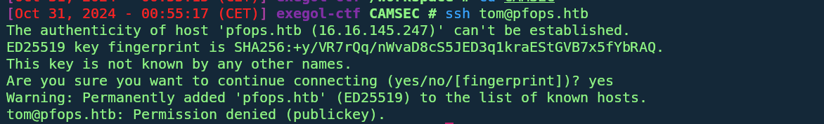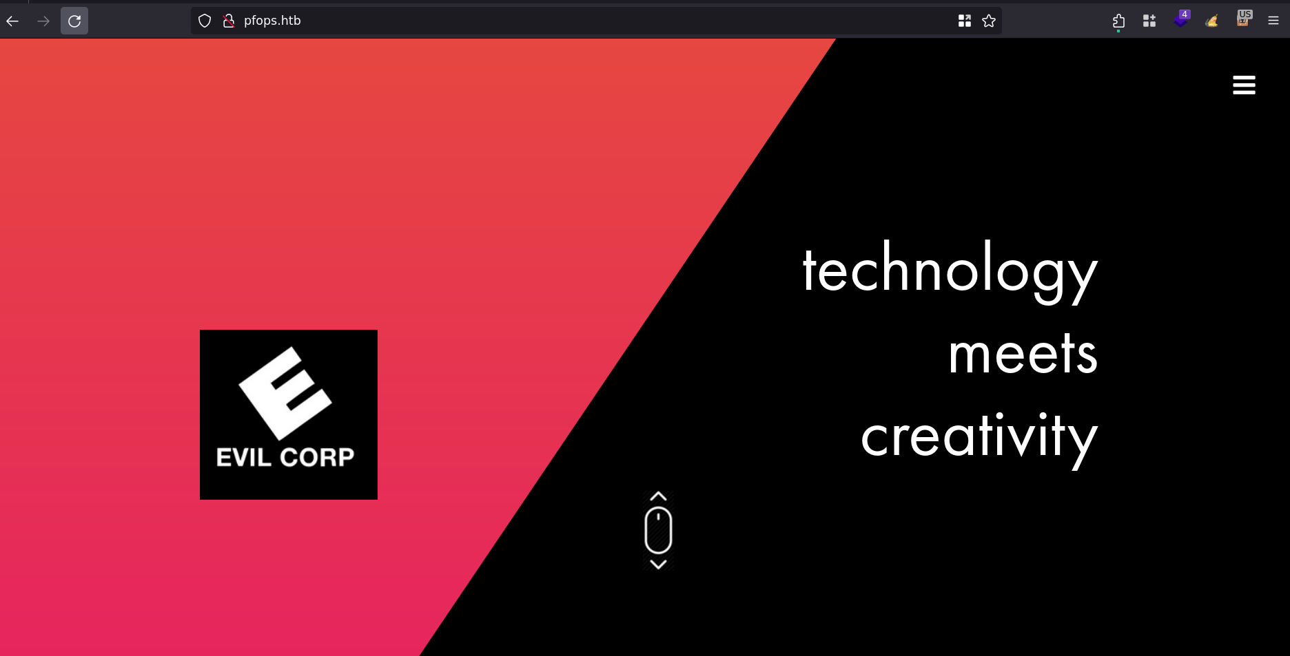- Accessing the machine’s IP in a browser causes a redirection to pfops.htb.